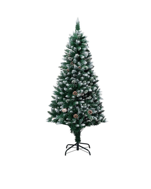 Brad de Crăciun artificial cu conuri brad și zăpadă albă 210 cm