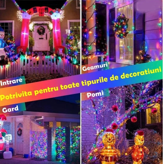 Instalatie Led Rola Multicolor 50m, 350 LED, Decorativa, Protectie la Apa, pentru Interior și Exterior