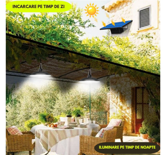 SET 2 LAMPI SOLARE SUSPENDATE CU ABAJUR, LUMINA ALBA, TELECOMANDA INCLUSA