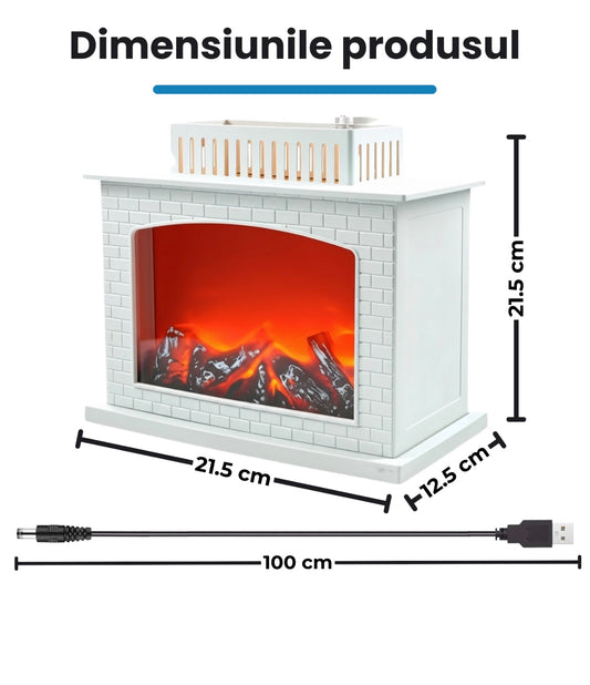 Semineu Decorativ, Lumina LED cu simulare flacari, Model Vintage , Cu iluminare calda, Alimentare priza, Alimentare pe baterii, 21.5 x 21. cm, Pentru interior, Plastic, Alb