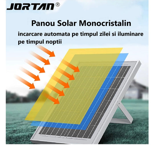 Proiector Solar LED Jortan 100W din Aluminiu cu Telecomandă, Senzor de Mișcare și Lumină, Exterior ,Rezistent, Iluminare Inteligentă